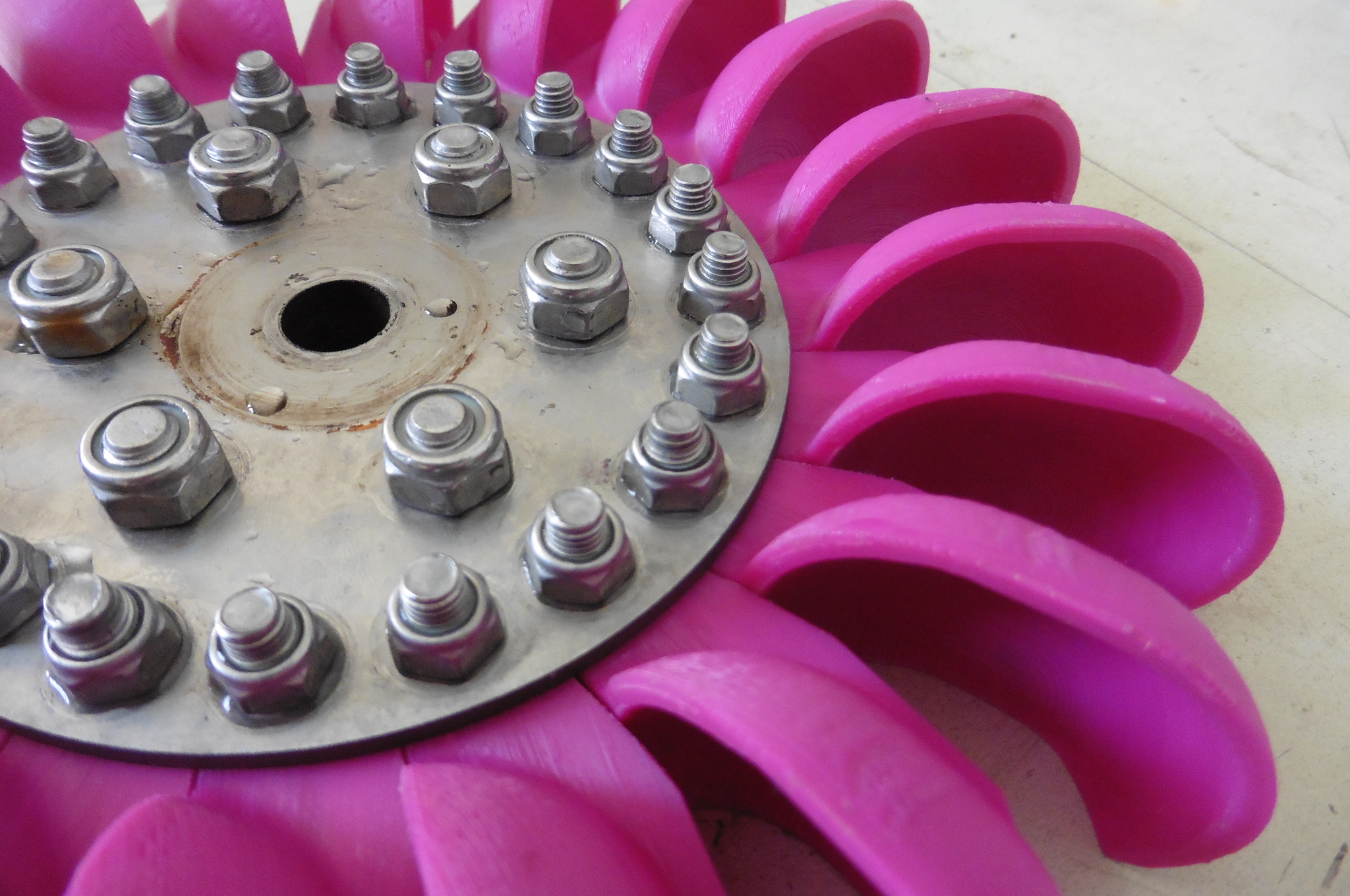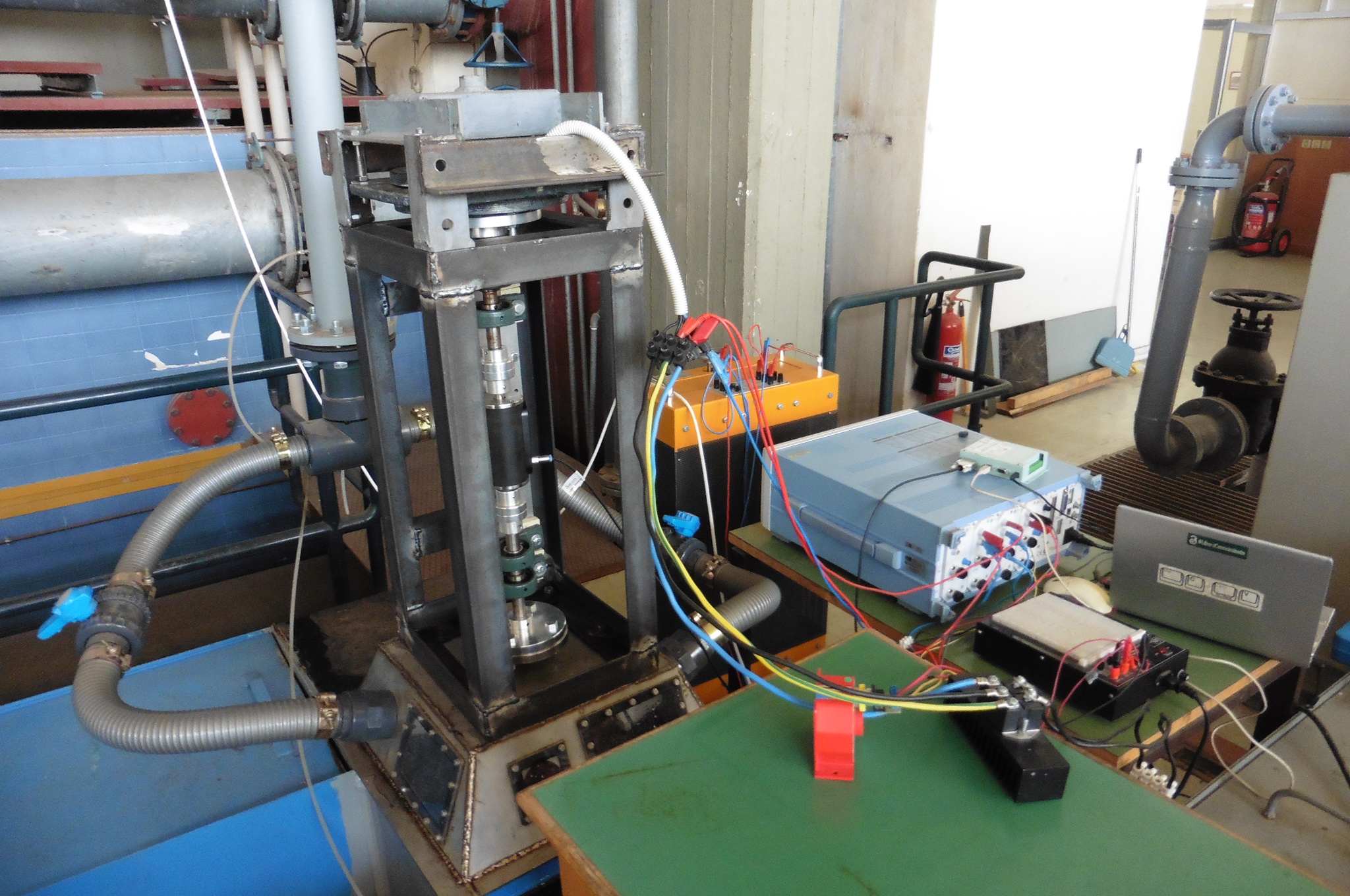 The experimental setup to measure the efficiency of the turbine using a torque meter on the shaft