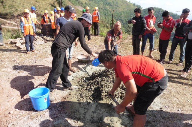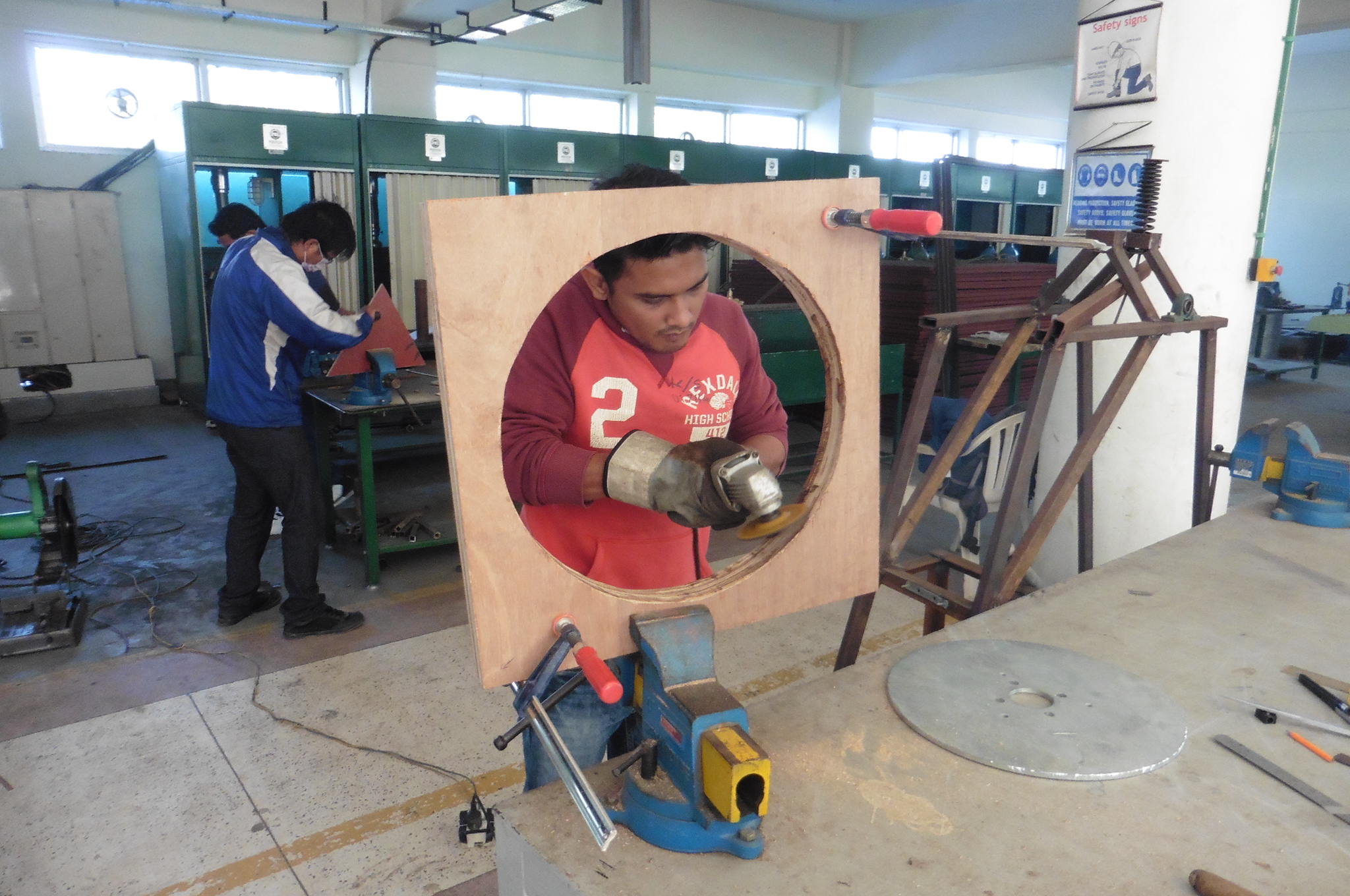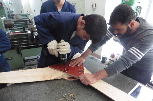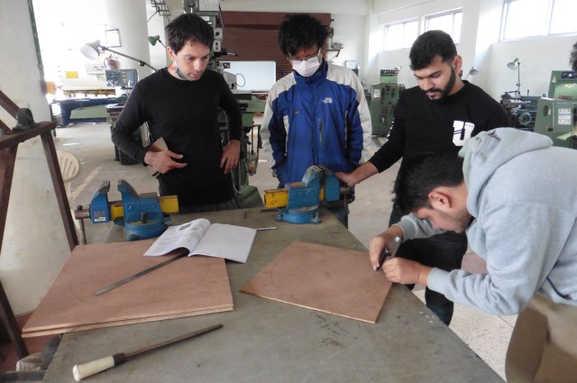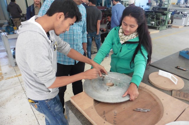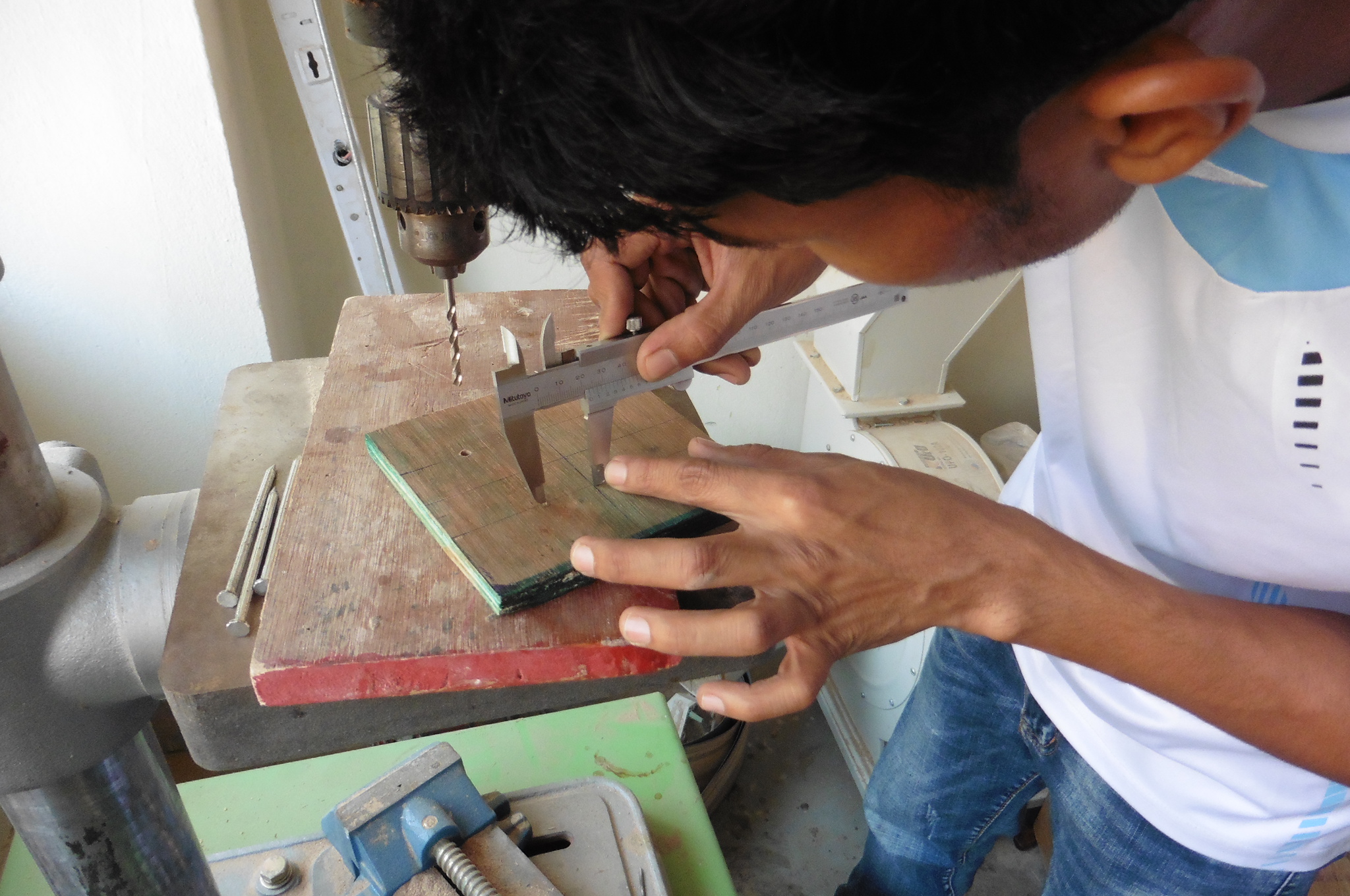 A coil placed on top of the magnet positioning jig showing the way magnets pass over coils