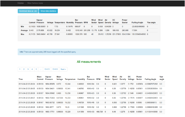 Post-processing and storage capabilities are under research at the moment, along with further improvements, regarding the visualization of the real time measurements, using open source software frameworks, already developed and field tested, such as the one developed in the context of the OpenEnergyMonitor project, namely Emomcms (https://emoncms.org/). Finally, remote monitoring capabilities are being studied, taking into account the particularities present in the majority of small wind turbine installations sites and off-grid micro-energy systems in general (e.g usually no Internet or cellular coverage).