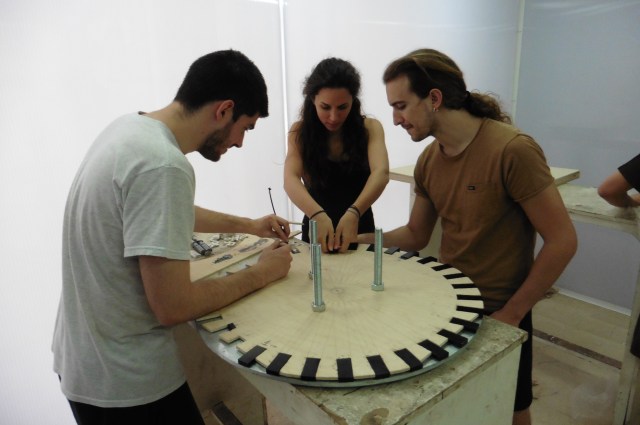 During these workshops small wind turbines and pico-hydro plants are constructed from scratch by the students themselves. They have the chance to get acquainted with different tools and techniques such as cutting and grinding metals, arc welding, using hand carving tools for wood and making resin moulds. Also they get acquainted with using different materials such as wood, resins, iron and copper by winding coils, carving the rotor blades, casting the stator and rotors of the generator and welding the metal frame.